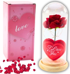Večna vrtnica v prozorni kupoli je stilna dekoracija in simbolično priznanje. Topla bela svetloba LED poudari lepoto realistično izdelanega cveta in posvetli vsak interier. Leseno podnožje daje naraven videz in stabilnost, kupola hkrati ščiti pred prahom.