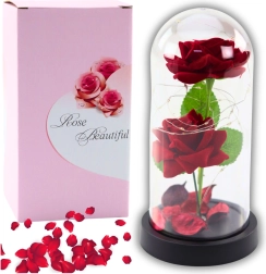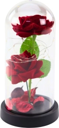 Te elegantne dekorativne vrtnice pod prozorno kupolo z nežnim LED osvetljevanjem so popolno darilo za romantične priložnosti. Dve umetni vrtnici skupaj s cvetnimi listi vrtnic ustvarjata neponovljivo vzdušje.
