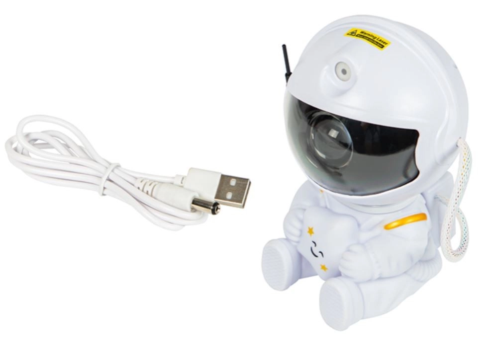 Oblika sedečega astronavta z magnetno pritrjeno, povsem vrtljivo glavo (360°) omogoča, da projekcijo usmerite natanko tja, kjer najbolj zažari. Projektor je odlična dekoracija za dnevno sobo in otroško sobo, z napajanjem prek USB pa ga zlahka priključite na napajalnik, powerbank ali računalnik.