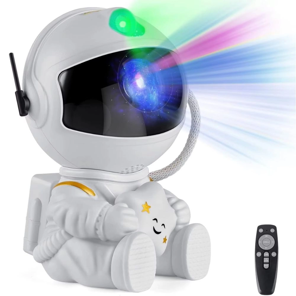 Ustvarite si doma pomirjujočo galaksijo za sprostitev, branje ali uspavanje otrok. Astronavtski projektor projicira gibljive barvite meglice in zvezde z možnostjo natančnega prilagajanja – od barve in svetlosti do hitrosti efekta. Z daljinskim upravljalnikom lahko udobno preklapljate med načini iz postelje ali kavča, časovnik 45/90 minut pa poskrbi za samodejni izklop.
