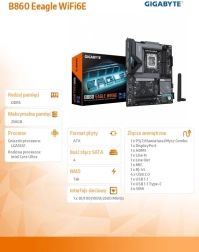 Zgradite zmogljiv in zanesljiv PC na platformi Gigabyte B860 Eagle Wi‑Fi 6E. Plošča podpira najnovejše procesorje Intel Core Ultra (2. generacija), dvokanalne DDR5 module z XMP profili ter ponuja robustno napajanje VRM Digital Twin 12+1+2 za stabilno delovanje tudi pri zahtevnem delu in igrah.