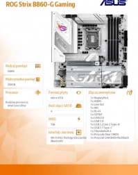 Zgradite kompaktni, a brezkompromisni igralni PC z osnovno ploščo ROG Strix B860-G Gaming WiFi. Zahvaljujoč podpori PCIe 5.0 za najnovejše grafične kartice, hitrim modulom DDR5 in vratom Thunderbolt 4 dobite vrhunski pretok podatkov in prihodnjo razširljivost. Vgrajeni Wi‑Fi 7 in bogat zadnji panel z USB ponujata ultrahitro povezavo doma ali na LAN zabavi.