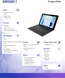 Tablica 2v1 Krüger&Matz EDGE 1089 je zasnovana tako, da nudi maksimalno prilagodljivost uporabnikom, ki potrebujejo kombinacijo tablice in prenosnika v eni kompaktni napravi. Zahvaljujoč snemljivi tipkovnici lahko preprosto prehajate med različnimi načini dela.