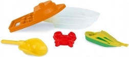 Ta živahen plastični čoln je nujen dodatek za vsakega otroka, ki rad uživa na plaži. Komplet prav tako vključuje različne kalupe in posodice, ki omogočajo ustvarjanje v pesku in vodi.