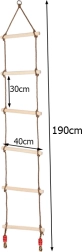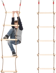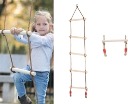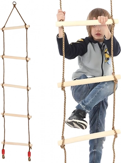 Vrvna lestev je odlična izbira za aktivno igro na prostem. Gladke lesene prečke brez ostrih robov omogočajo udoben oprijem in zanesljivost pri plezanju. Močne pletene vrvi, zaključene z varnostnimi vozli, ohranjajo lestev stabilno tudi pri intenzivni uporabi.
