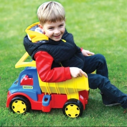 Otroško Kiparsko Velikanka 55 cm je velik tovorni avtomobil dolžine 55 cm, ki ga otroci obožujejo zaradi možnosti nakladanja, razkladanja in prevažanja svojih najljubših igrač. Opremljen je s sprednjim in zadnjim ročajem za priklop vozačka ali linije za vlečenje. Kiparska korba z udobnim ročajem omogoča enostavno upravljanje in neskončno število iger. S nosilnostjo do 150 kg je idealna tudi za poganjalčke – najmlajši se lahko usedejo na igračo in poganjajo z nogami. Robustna konstrukcija zagotavlja vzdržljivost, zato je idealna za igro zunaj in doma.