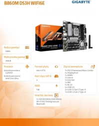 Osnovna plošča GIGABYTE B860M DS3H WIFI 6E prinaša sodobno opremo za sestave s procesorji Intel Core Ultra (Series 2). Ponuja PCIe 5.0 M.2 za izjemno hitro shrambo, 2.5GbE LAN in Wi‑Fi 6E za bliskovito povezljivost, izboljšano napajanje Hybrid 5+1+2 VRM ter bogato povezljivost z 2× DisplayPort in HDMI. Enostavno sestavljanje zagotavljata funkciji EZ‑Latch in WIFI EZ‑Plug, pregledno upravljanje v AI PerfDrive ter praktično hlajenje M.2 Thermal Guard za stabilno delovanje SSD.