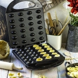 Pripravite hrustljave lupinice v obliki oreščkov in jih napolnite z najljubšo kremo – vanilijevo, čokoladno ali slano. Zahvaljujoč XL kapaciteti boste pogostitev za družino in goste pripravili v hipu. Neprijemljiva površina zagotavlja enostavno odstranjevanje in čiščenje brez prismod.