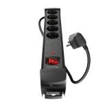 Podaljšek ponuja pet ozemljenih vtičnic, LED kontrolnik stanja zaščite, osvetljen izklopnik in otroške zapore. Praktične montažne odprtine za vertikalno in horizontalno namestitev ter premišljena oblika za udobno vodenje in shranjevanje dovodnega kabla pomagajo ohranjati red brez navlake kablov.