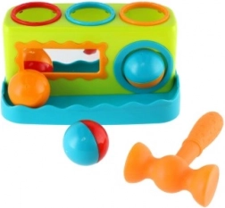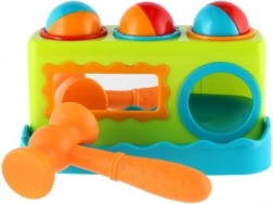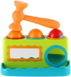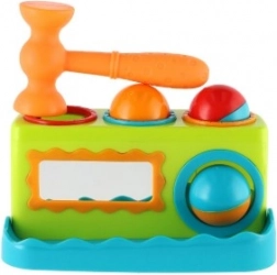 Ta barvita plastična zabijalka dolžine 21 cm je odlična izbira za prve razvojne igre. Otroci s kladivcem varno zabijajo tri žogice v pripravljene odprtine ter tako urijo prijem, moč in natančnost. Vgrajeno ogledalce na sprednji strani povečuje interakcijo in zabavo.