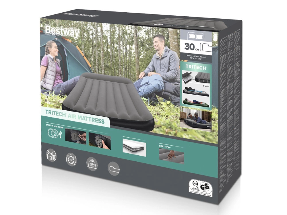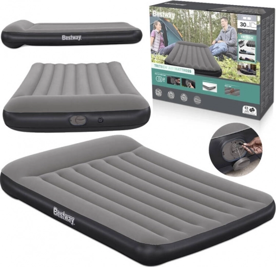 Napihljiva postelja Bestway TRITECH je zanesljiv spremljevalec za prenočevanje doma in na poti. Notranja konstrukcija TRITECH je ojačana za dolgotrajno oblikovno stabilnost ter je odpornejša proti raztezanju kot običajen PVC. Prijeten semišast zgornji sloj povečuje udobje in preprečuje drsenje posteljnine.