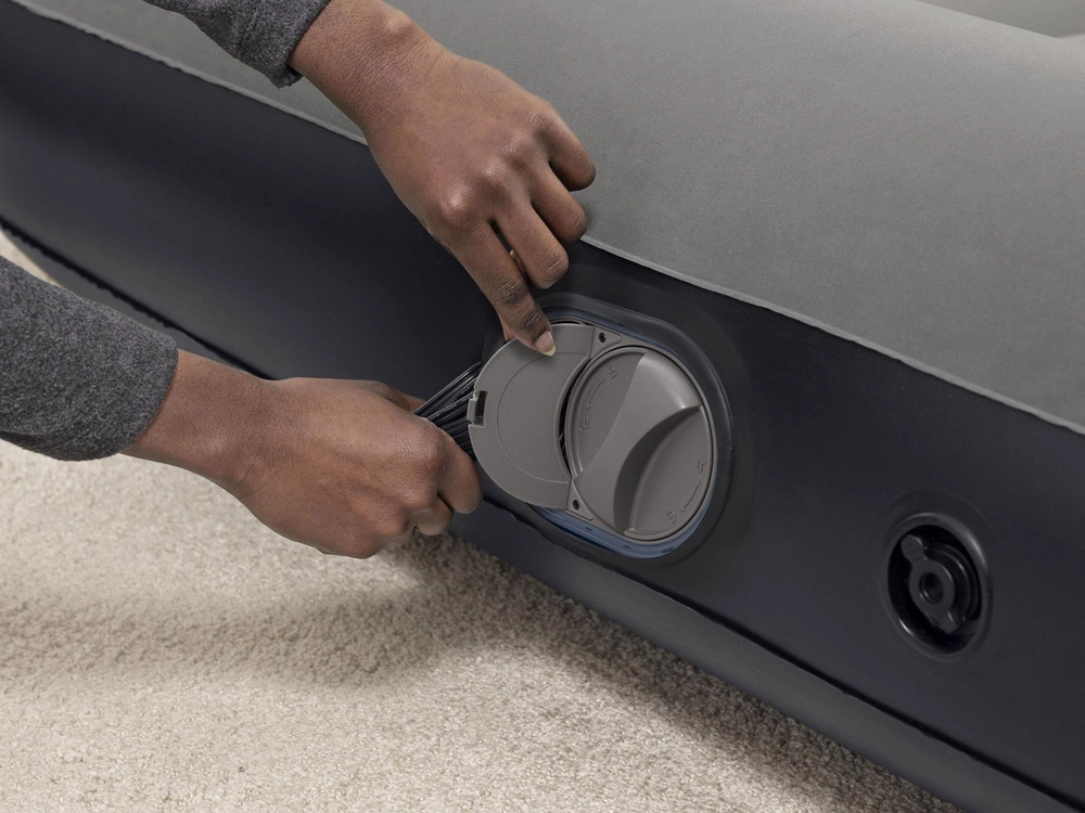 Vgrajena črpalka z USB napajanjem napihne vzmetnico v 3–4 minutah. Enostavna uporaba doma, na vikendu ali v kampu – le priključite na adapter ali powerbank.