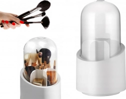 Praktičen vrtljiv organizator za kozmetiko združuje eleganten videz in maksimalno funkcionalnost. Zahvaljujoč prozornemu pokrovu bo vaša kozmetika zaščitena pred prahom in vlago, medtem ko 360° vrtljiva osnova omogoča hiter dostop do vseh izdelkov z enim gibom.