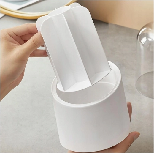 Hišast pokrov ščiti kozmetiko pred nečistočami, hkrati pa omogoča jasen pregled nad vsebino.