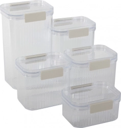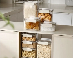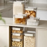 Uporabni so za vse od testenin, riža in kosmičev do moke, sladkorja, oreščkov ali piškotov. Trpežna plastika se zlahka čisti, varne sponke pa olajšajo vsakodnevno uporabo.