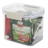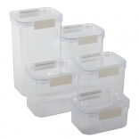 Ohranite shrambo pregledno in živila dlje sveža s setom petih prozornih posod s sponko in silikonskim tesnilom. Zaradi različnih velikosti so idealne za testenine, žita, kavo, čaj, začimbe in druga suha živila. Nepredušno zapiranje, prozorne stene in enostavna organizacija poskrbijo za red v kuhinji vsak dan.