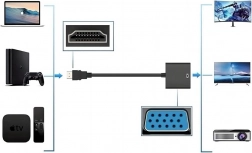 Adapter deluje v načinu plug and play. Preprosto ga povežite med HDMI vir in VGA zaslon ter takoj začnite projicirati.