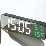 Moderna digitalna LED ura z elegantnim zrcalnim zaslonom združuje čas, budilko, temperaturo in vlažnost v eni napravi. Zahvaljujoč velikim, dobro berljivim številkam ter napajanju prek USB ali baterij je odlična izbira za spalnico, pisarno in dnevno sobo.