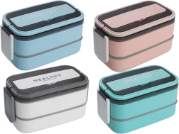 Praktična dvonadstropna bento škatla s prostornino 1400 ml za udobno in zdravo prehranjevanje na poti. Zahvaljujoč zrakotesnemu zapiranju, pregradam in varnim stranskim sponkam ostane vaša hrana sveža in ločena. Idealna za službo, šolo, univerzo in piknik, priložen je praktičen pribor, škatlo pa je mogoče segrevati v mikrovalovni pečici.