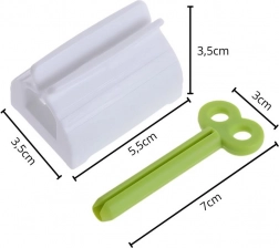 Dovolj je, da konec tube namestite v utor, primete vrtljivi ključ in postopoma vrtite. Tuba se enakomerno navija, vsebina pa se iztisne natančno tja, kjer jo potrebujete – brez napora in brez ostankov. Kompaktne mere in trpežna plastika zagotavljajo udobno uporabo vsak dan.