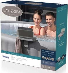 Bestway 4-v-1 večnamenska polica je idealna rešitev za vse, ki želijo povečati udobje pri uporabi masažne kadi Lay-Z-Spa. Z zahvaljujoč tej polici boste imeli vse potrebne dodatke vedno pri roki, sprostitev v vodi pa bo še prijetnejša.
