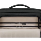 Poskrbi tudi za red in varnost: ne manjkajo pregledni žepi za dodatke, RFID blokirni žep proti nepooblaščenemu skeniranju kartic, zanka za ključe in hiter dostop s sprednje strani. Za udobno prenašanje so na voljo mehki ročaj, odstranljiv nastavljiv ramenski pas in trak za ročaj kovčka. Zunanji material je iz 88 % recikliranega PET-a – praktična izbira prijazna do planeta.