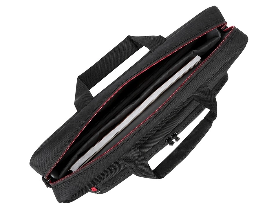 Glavni, oblazinjeni predal zanesljivo ščiti prenosnik pred udarci in praskami, hkrati pa omogoča hiter dostop zaradi zgornjega odpiranja.