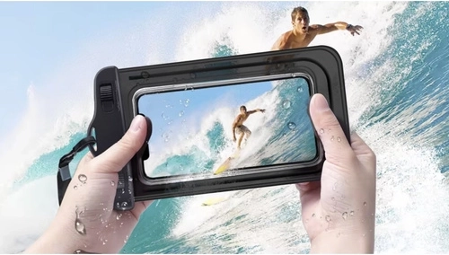 Dvotočkovni zapiralni mehanizem etui trdno zatesni in ščiti telefon tudi pri popolni potopitvi – idealno za plavanje in vodne športe.