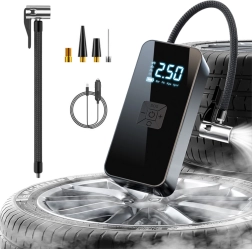 Kompresor je opremljen z berljivim digitalnim zaslonom za natančno nastavitev in spremljanje tlaka. Vgrajena LED osvetlitev olajša uporabo tudi v temi. Zaradi svoje robustne konstrukcije in visoke zmogljivosti je idealna rešitev ne samo za osebno rabo, ampak tudi za daljša potovanja ali kampiranje.