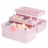 Praktičen rožnat organizator s pokrovom bo vaše dodatke ohranjal popolnoma urejene. Zahvaljujoč kompaktnih meram in veliki kapaciteti je idealen za elastike, sponke, naglavne trakove, nakit in drobnarije. Odporna plastična izvedba se zlahka čisti in odlično izgleda na toaletni mizici, v kopalnici ali pisarni.