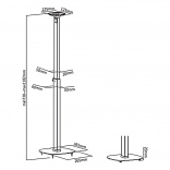Stojalo je zasnovano tako, da se s svojim estetskim in modernim videzom poda v vsak interier. V paketu so priložene plastične nogice za optimalno postavitev na trdo podlago ter kovinski konici, ki zagotavljata maksimalno stabilnost na preprogi.