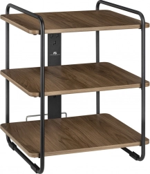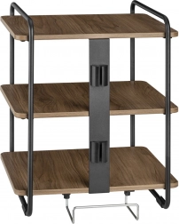 Elegantna kombinacija temnega lesa in črnega kovinskega okvirja daje sodoben videz, ki se poda v vsak interier.