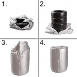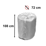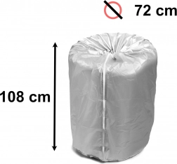 Prevleka je združljiva s pnevmatikami premera od 13 do 17 palcev, kar jo naredi univerzalno rešitev za večino vozil. Zadrga zagotavlja enostavno namestitev in odstranitev prevleke, medtem ko zategovalna vrvica na spodnjem delu omogoča popolno prileganje, kar povečuje zaščito proti vlagi in prahu.