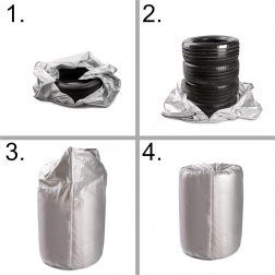 Prevleka pomaga ohranjati red v vaši garaži ali kleti, z zaščito pnevmatik pred umazanijo in lažjim shranjevanjem.