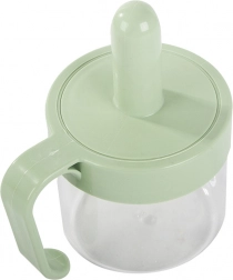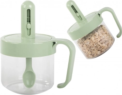 Ergonomski ročaj zagotavlja zanesljiv oprijem tudi pri polni posodi. Zračno neprepusten pokrov preprečuje dostop vlage in ohranja vsebino dlje časa svežo.