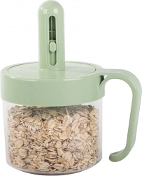 Ta kompaktna posoda iz trpežne plastike je zasnovana za vsakodnevno uporabo v kuhinji in shrambi. Praktičen pokrov z vgrajeno izvlečno žličko in drsnikom vam pomaga natančno odmeriti količino sestavin brez dodatnega pripomočka. Zračno neprepustno zapiranje ščiti vsebino pred vlago in zagotavlja dolgotrajno svežino.