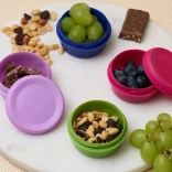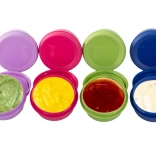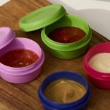 Uživajte v svojih najljubših omakah in dipih kjerkoli – te barvne posodice s prostornino 80 ml imajo nepropustne zapiralke, ki zanesljivo preprečujejo iztekanje. Odlične so za lunch box, torbo ali nahrbtnik in ohranjajo vsebino svežo in higienično shranjeno.