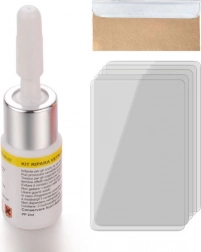 Načrtovano za manjše poškodbe vetrobranskih stekel – od t. i. zvezdic do krajših linearnih razpok. Primerno za hitra popravila doma in na poti.