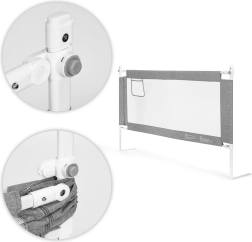 Univerzalni sistem pritrditve olajša namestitev na različne tipe ležišč, možnost povezave več panelov pa ustvari zaščiten prostor po obodu postelje. Trpežna kombinacija jekla, PP in kakovostnega blaga zagotavlja stabilnost in enostavno vzdrževanje – prevleko lahko snamete in operete.
