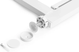 Zapora se ponaša z enostavno namestitvijo zahvaljujoč tlačnemu montažnemu sistemu, ki ne zahteva vrtanja. Zahvaljujoč zaščitnim podložkam se izognete poškodbam površin sten in tal. Če raje imate stalno montažo, zapora vključuje posebne montažne konzole za trajno pritrditev.