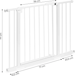 Prilagodite širino zapore z priloženimi razširitvenimi paneli in ustvarite idealno rešitev za različne dimenzije vrat in stopnišč. Zapora je prav tako odlična za zagotavljanje varnosti prostorov pred vašimi štirinožnimi prijatelji.