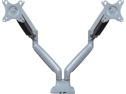 Izboljšajte svojo delovno mizo z robustnim dvojnim nosilcem s plinskim batom, ki zviša produktivnost in udobje. Nosilec je zasnovan za monitorje 17–35″, vključno z ultraširokimi in ukrivljenimi modeli, ter z močnim vzvodnim sistemom drži do 15 kg na vsako roko. Zlahka nastavite idealen položaj – od nagiba in zasuka do vrtenja v pokončni način.