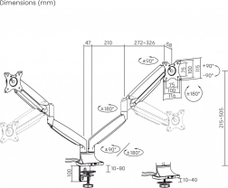 Nastavite si idealen položaj monitorjev z nagibom −15°/+15°, zasukom ±90° in možnostjo vrtenja v pokončni način. Plinski bat omogoča gladko nastavljanje višine brez napora.