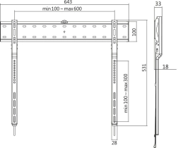 Nizek profil nosilca pritisne televizor blizu stene in ustvari minimalističen videz brez motečih rež.