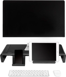 Ustvarite udobno in pregledno delovno mesto z nosilnostjo stojala do 25 kg. Zahvaljujoč zložljivi zasnovi preprosto prilagodite širino na 420 / 470 / 520 mm. Praktični predal in vgrajen držalo za pametni telefon in tablico poskrbita za popoln red na mizi, medtem ko lahko tipkovnico in miško pospravite pod robustno plastično‑kovinsko stojalo.