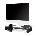 Dvignite monitor na udobno višino in shranite tipkovnico ter miško pod stojalo. Pridobili boste več prostora in boljše delovne navade.