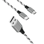 Ta praktičen kabel združuje Micro USB in USB‑C v eni rešitvi, zato zlahka povežete starejše in novejše naprave. Opleten bombažen površinski sloj povečuje odpornost proti lomljenju in obrabi, medtem ko kovinski priključki dodajo premijski videz in dolgo življenjsko dobo.