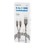 Univerzalen kabel 2 v 1 znamke LogiLink za polnjenje in prenos podatkov ponuja priključka Micro USB in USB‑C v enem. Zahvaljujoč opletenemu tekstilnemu dizajnu je kabel vzdržljiv, prilagodljiv in primeren za širok nabor naprav. Podpira polnjenje do 5 V / 2 A (10 W), zato zanesljivo napaja telefone, slušalke in manjšo elektroniko brez potrebe po več kablih.