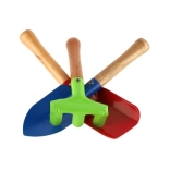 Trije osnovni pripomočki – lopatka, štil in grabljice – otrokom omogočajo kopanje, presajanje in rahljanje zemlje. Vse v idealni velikosti za otroško roko.