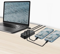 Uživajte v bliskovito hitrem prenosu podatkov do 5 Gbit/s prek vrat USB 3.2 Gen 1. Idealno za velike datoteke, videe v visoki ločljivosti in zahtevne aplikacije. Vsaka vrata imajo lastno stikalo, kar omogoča selektivno aktivacijo ali deaktivacijo posameznih naprav brez vpliva na ostale. LED-indikator prikazuje stanje posameznih vrat na prvi pogled. Priložen je napajalnik 5 V/3,5 A (17,5 W), ki zagotavlja stabilno napajanje tudi za zahtevne naprave.